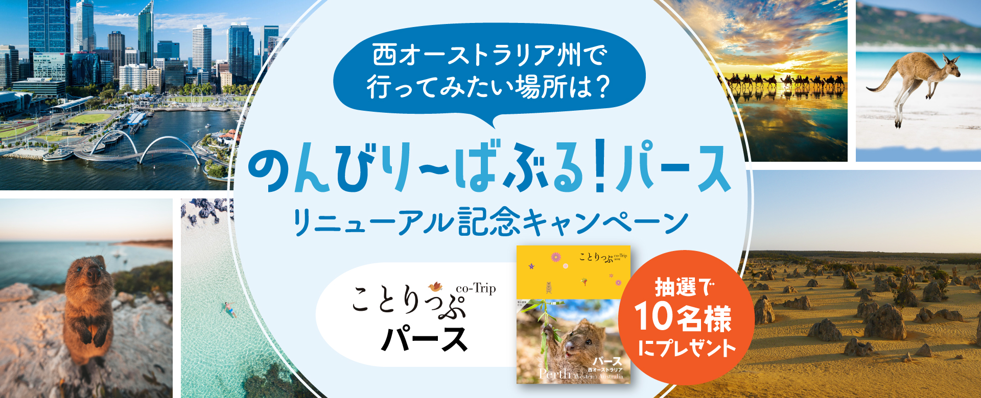 旅のヒントが満載のガイドブック【WAVE】でパースの旅を計画しよう! オーストラリアの西側1/3を占める広大な州には、都会と自然が融合した美しいパースの街から、ジンベイザメやジュゴンが遊ぶ世界遺産の海、雄大な景色の広がるアウトバックなど、魅力溢れるスポットがいっぱいです。