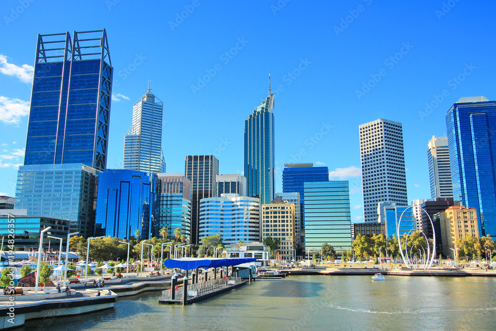 パースのシンボル的存在のベルタワーやスワンリバー沿いのウォーターフロント...